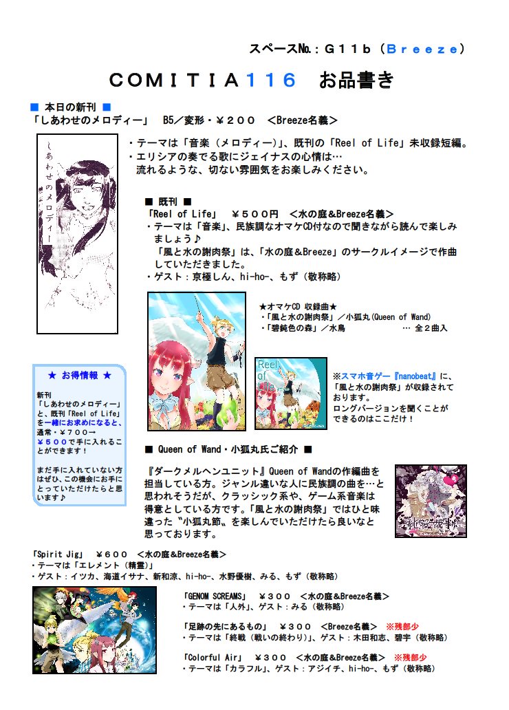 いつも「水の庭&Breeze」名義の合同サークル参加ですが、今回相方が別イベントに個人で参加するので、サークル名は個人の「Breeze」で申込してあります。